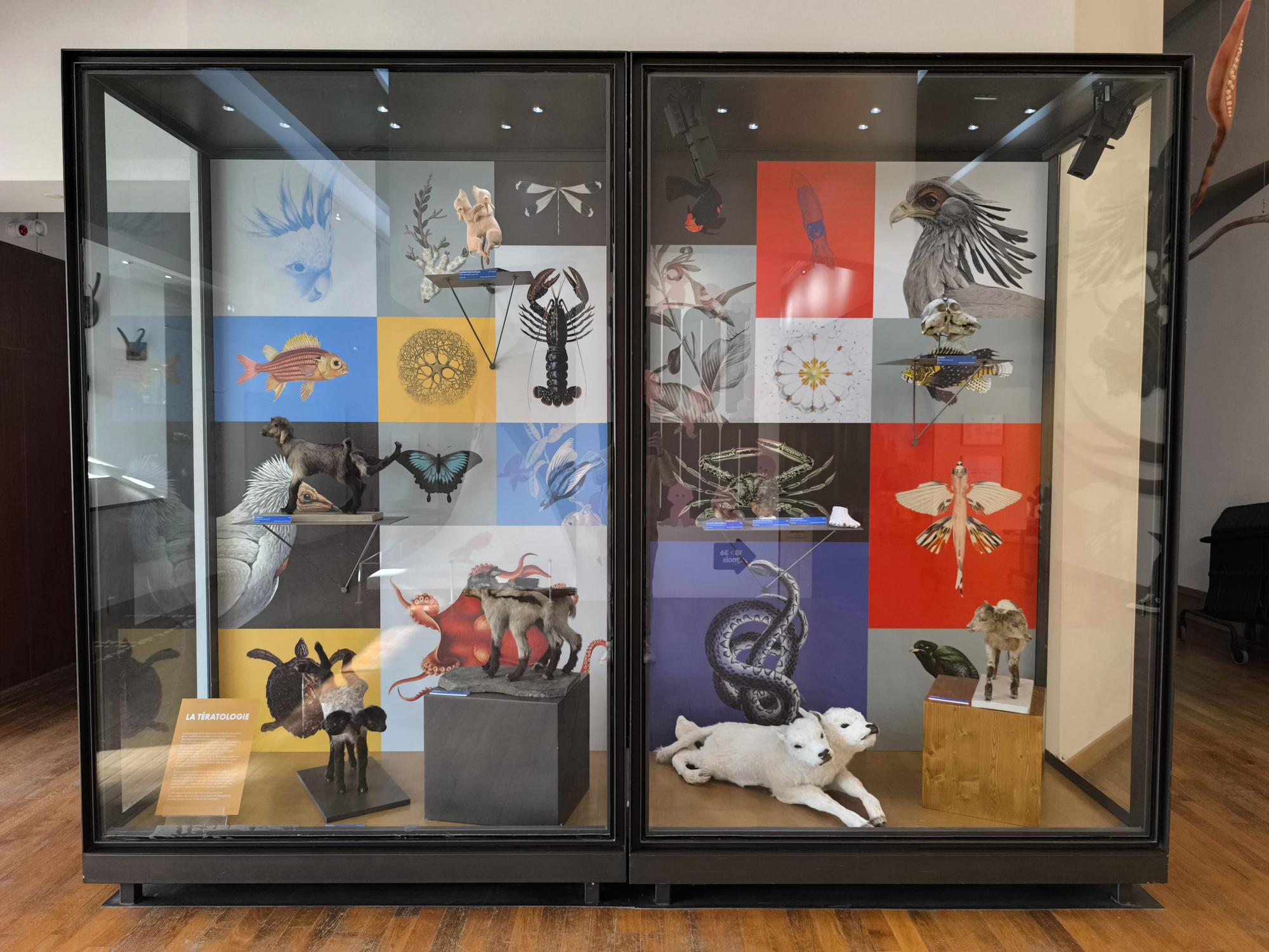 C'est pour cette édition 2025-2026 de "Au cœur de l'œuvre" qu'au Muséum-Aquarium de Nancy nous avons décidé de valoriser quelques spécimens de notre collection tératologique. Exposée dans notre vitrine "Acquisitions", cette collection comporte des spécimens naturalisés ou des moulages qui présentent des malformations physiques. Vous retrouverez :